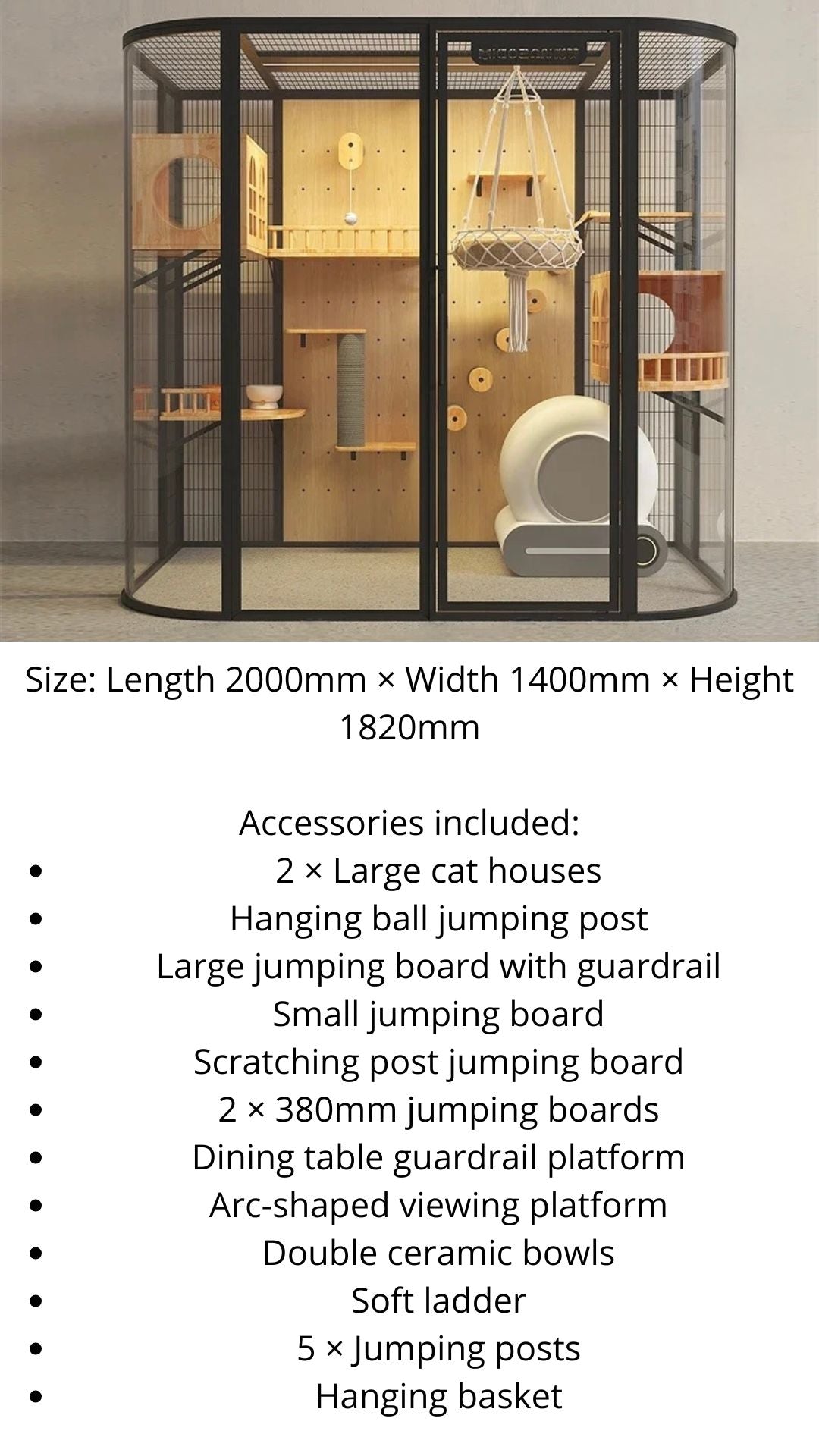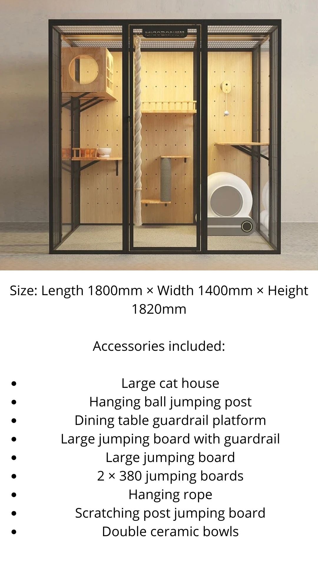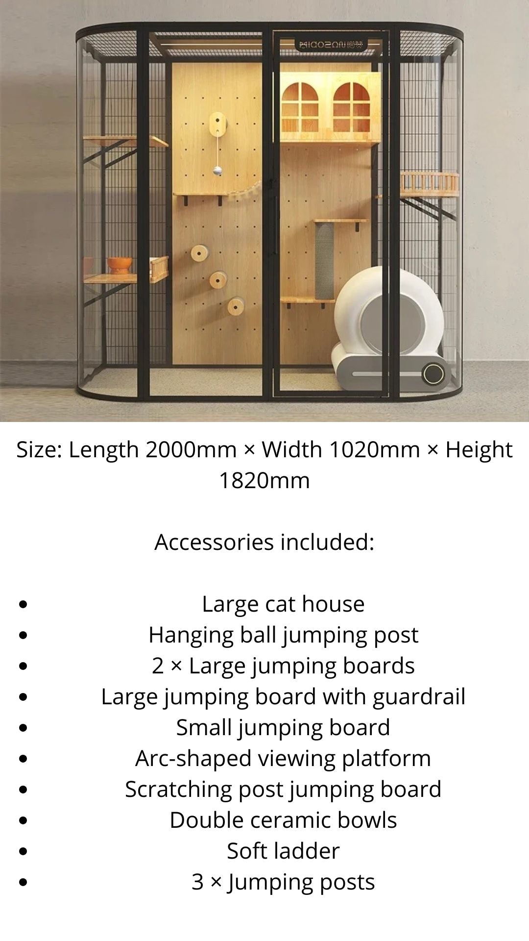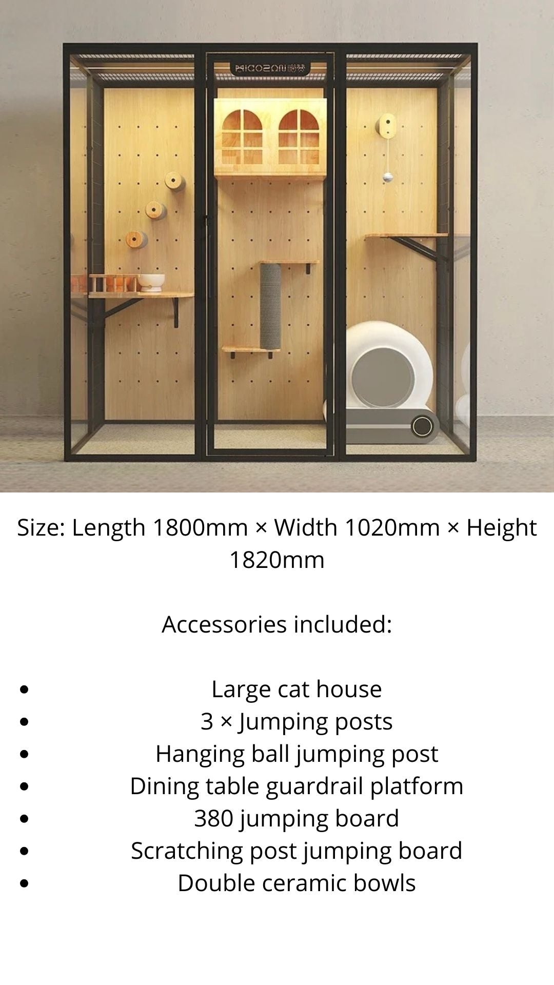 Multi-Level Design: Climbing boards, scratch posts, hammocks, and observation platforms keep your cat active, curious, and entertained.